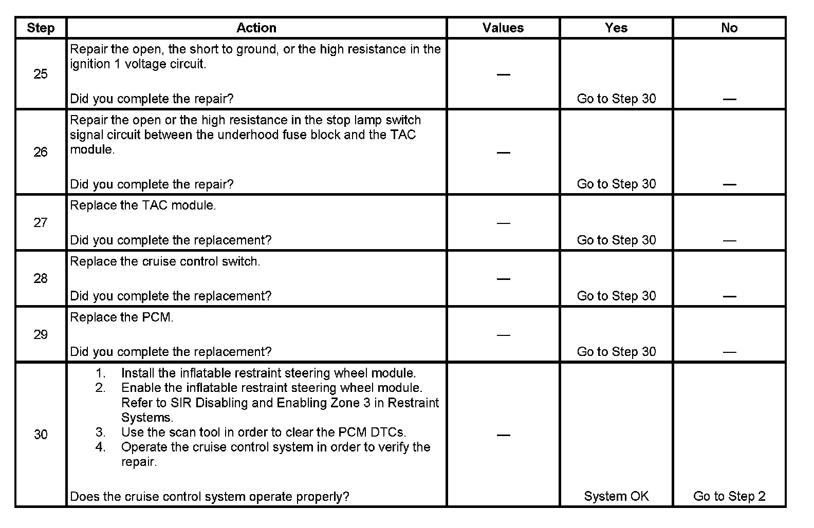 Disable the inflatable restraint steering wheel module when performing this diagnostic table. Refer to SIR Disabling and Enabling Zone 3 in Restraint Systems.
