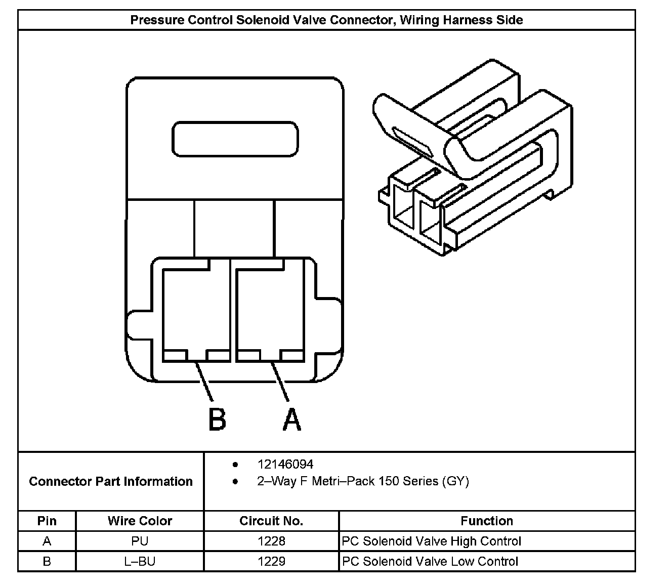 Pressure Control Solenoid Valve Connector End View, Wiring Harness Side: