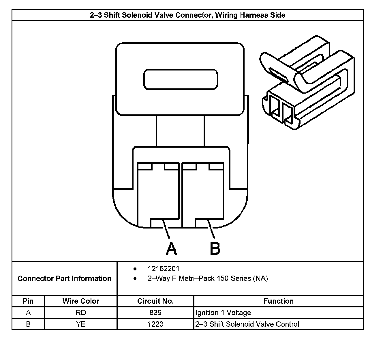 2-3 Shift Solenoid Valve Connector End View, Wiring Harness Side: