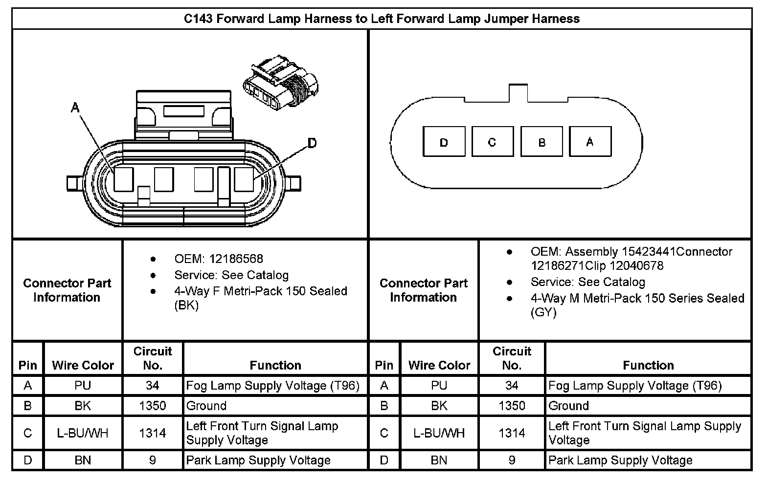 C143 Forward Lamp Harness To Left Forward Lamp Jumper Harness: