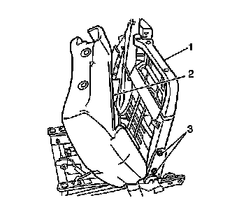 5. Remove the fasteners (3) retaining the seat back frame (1) to the recliner.