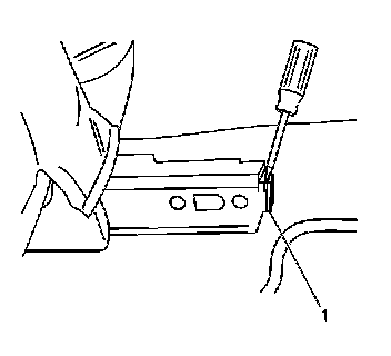 4. Remove the rear seat track trim cover (1) from the outboard seat track.