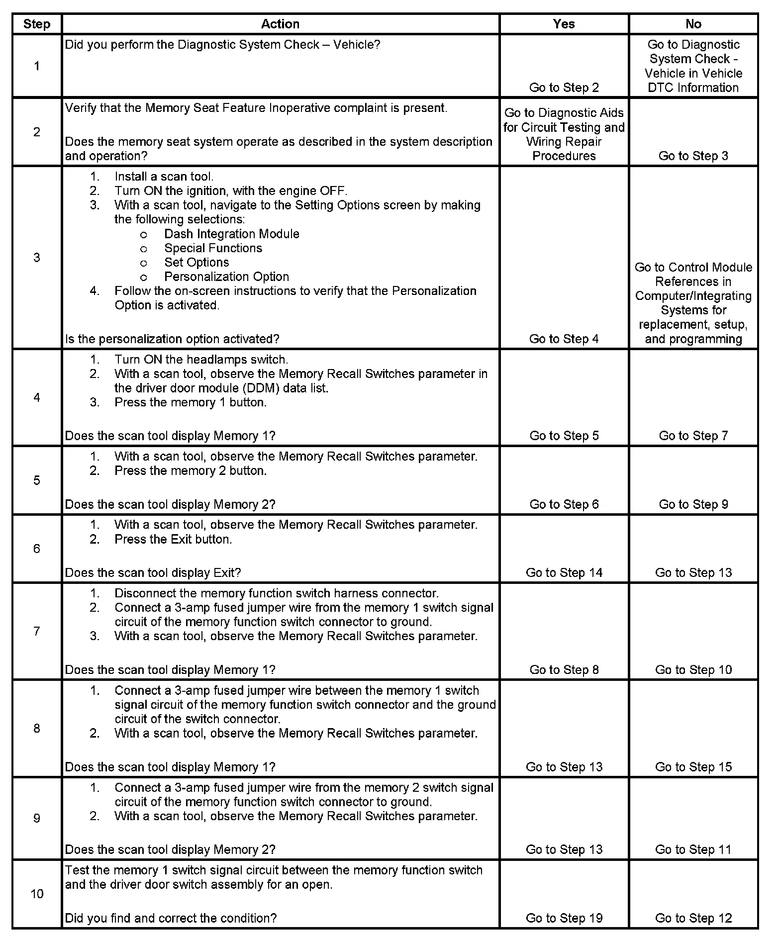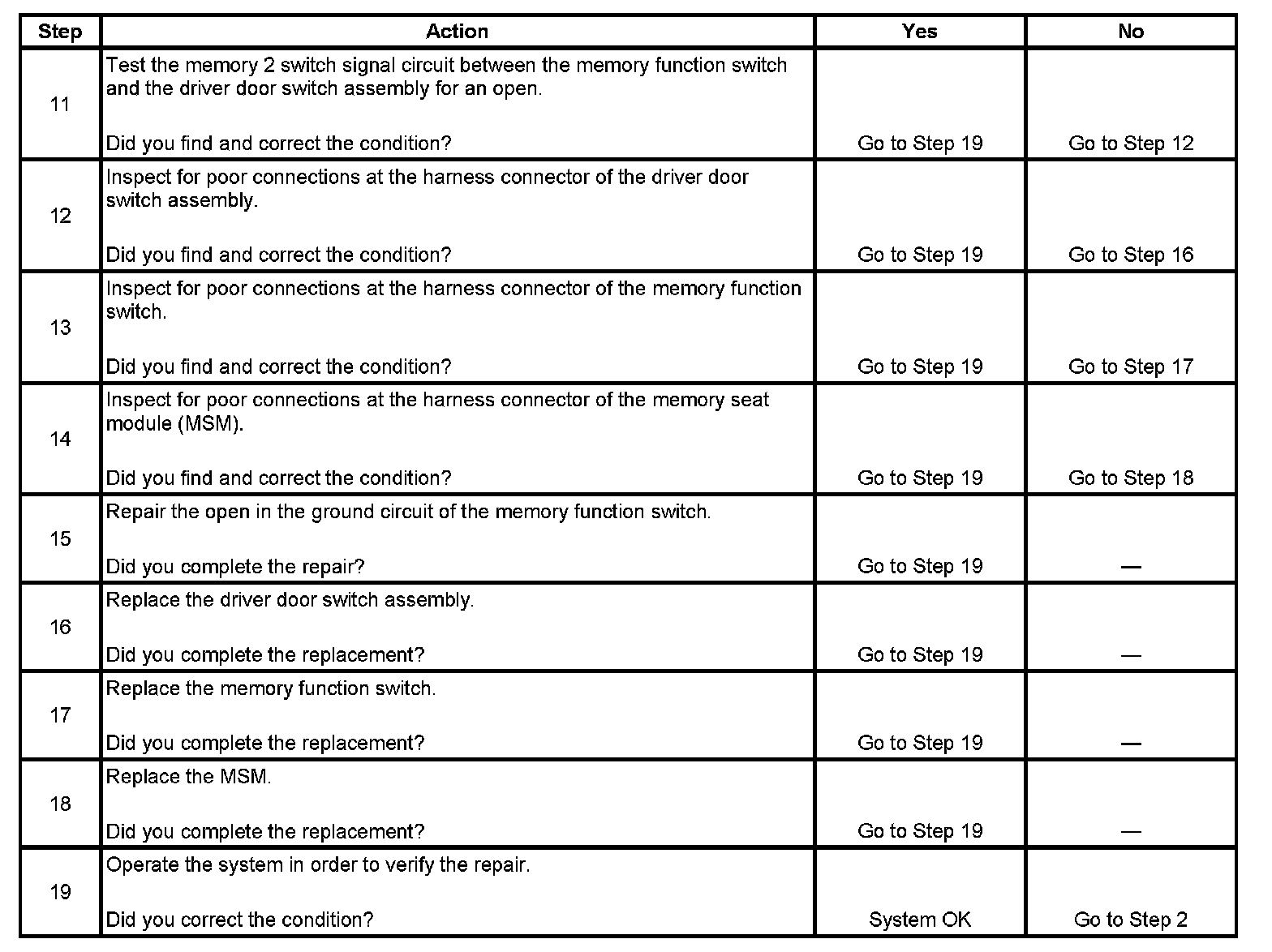 MEMORY SEAT FEATURE INOPERATIVE