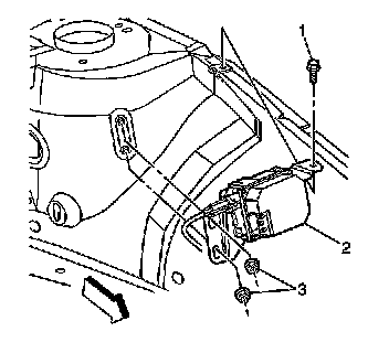 3. Remove the cruise control module bracket retaining fasteners (1, 3).