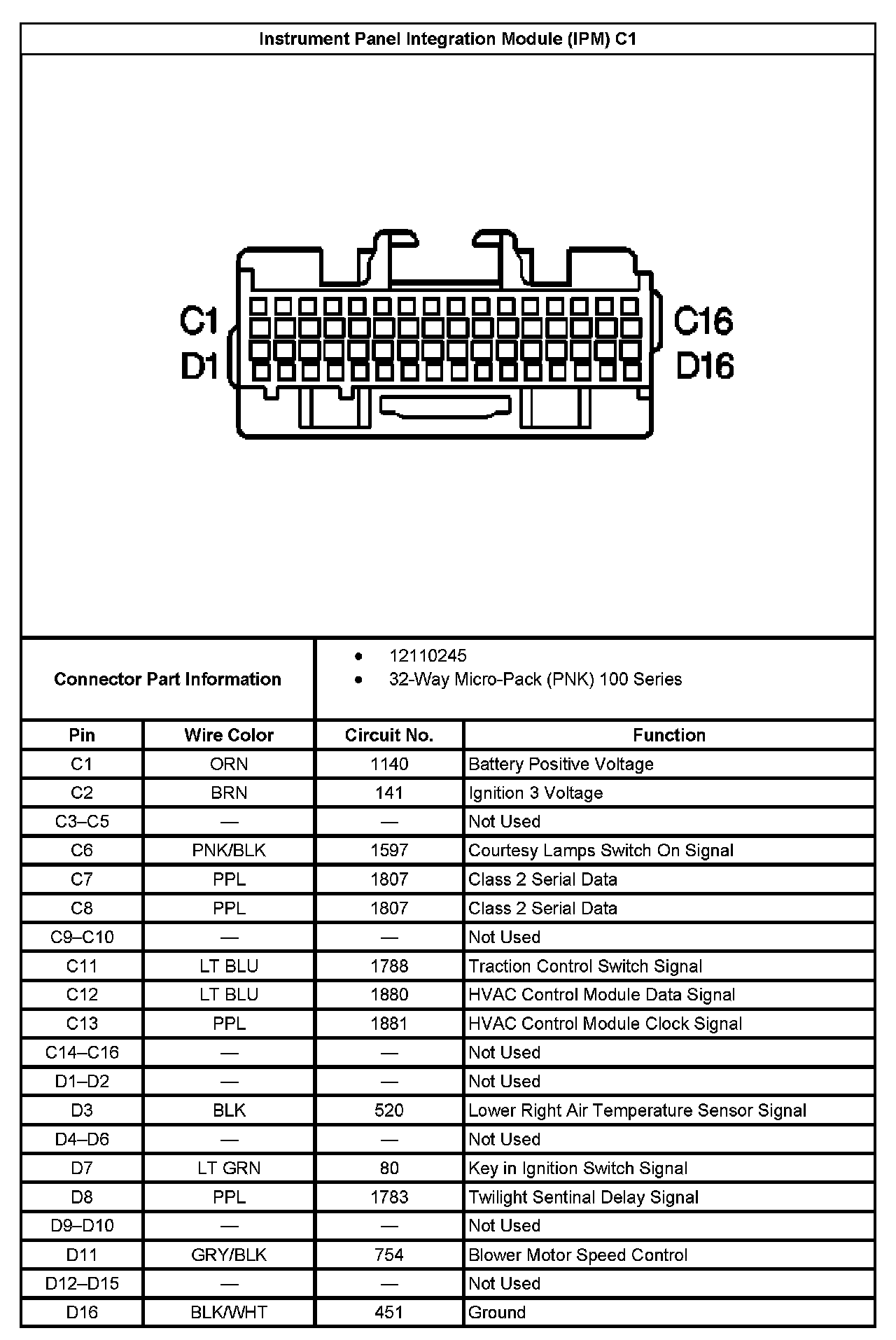 Instrument Panel Integration Module (IPM) C1: