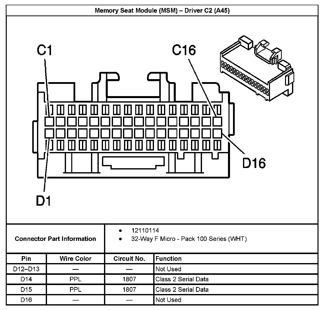 Memory Seat Module (MSM) - Driver C2 (With RPO Code A45) Part 1: