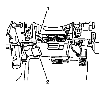 3. Disconnect the electrical connector (1) from the turn signal/hazard warning flasher (2).