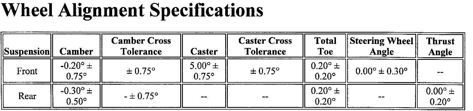 Wheel Alignment Specifications