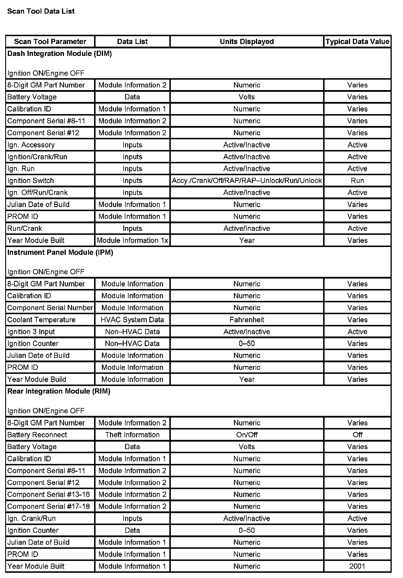 Scan Tool Data List: