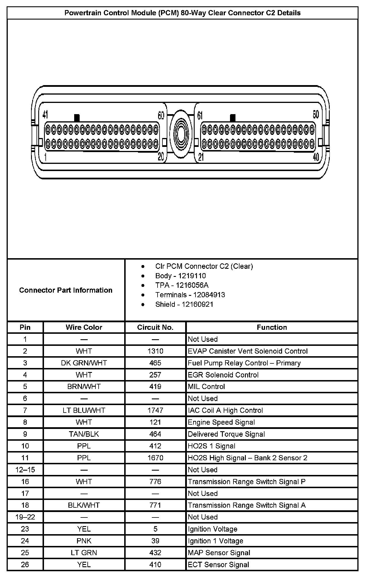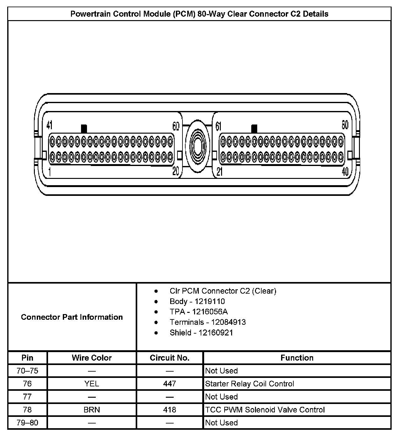 Powertrain Control Module (PCM) 80-Way Clear Connector C2 Details Part 1: