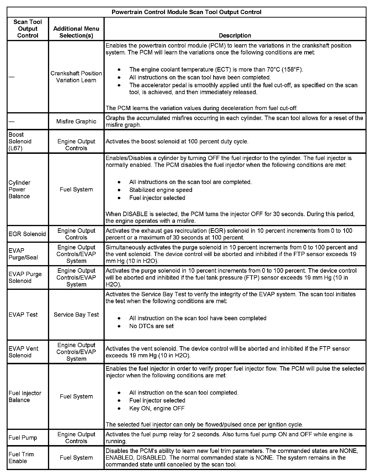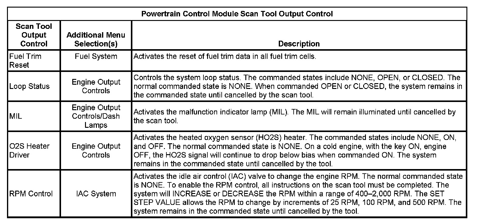 Powertrain Control Module Scan Tool Output Control Part 1: