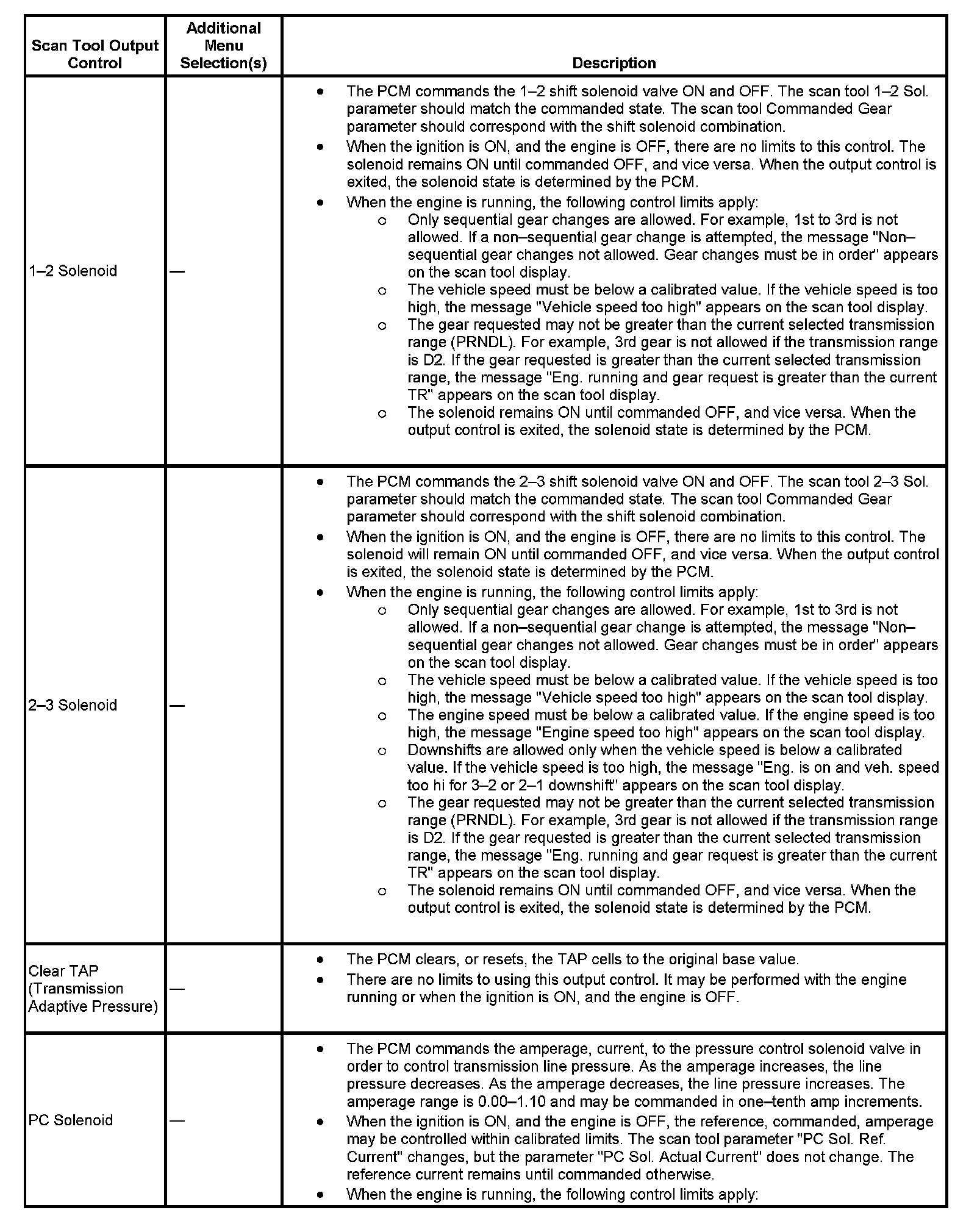 Scan Tool Output Controls