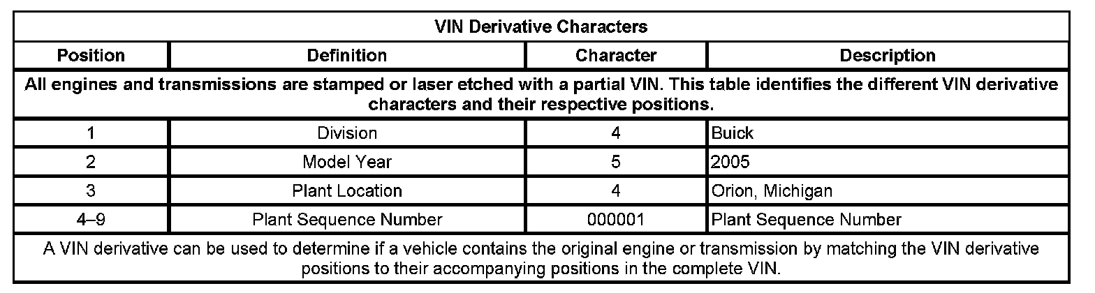VIN Derivative Characters: