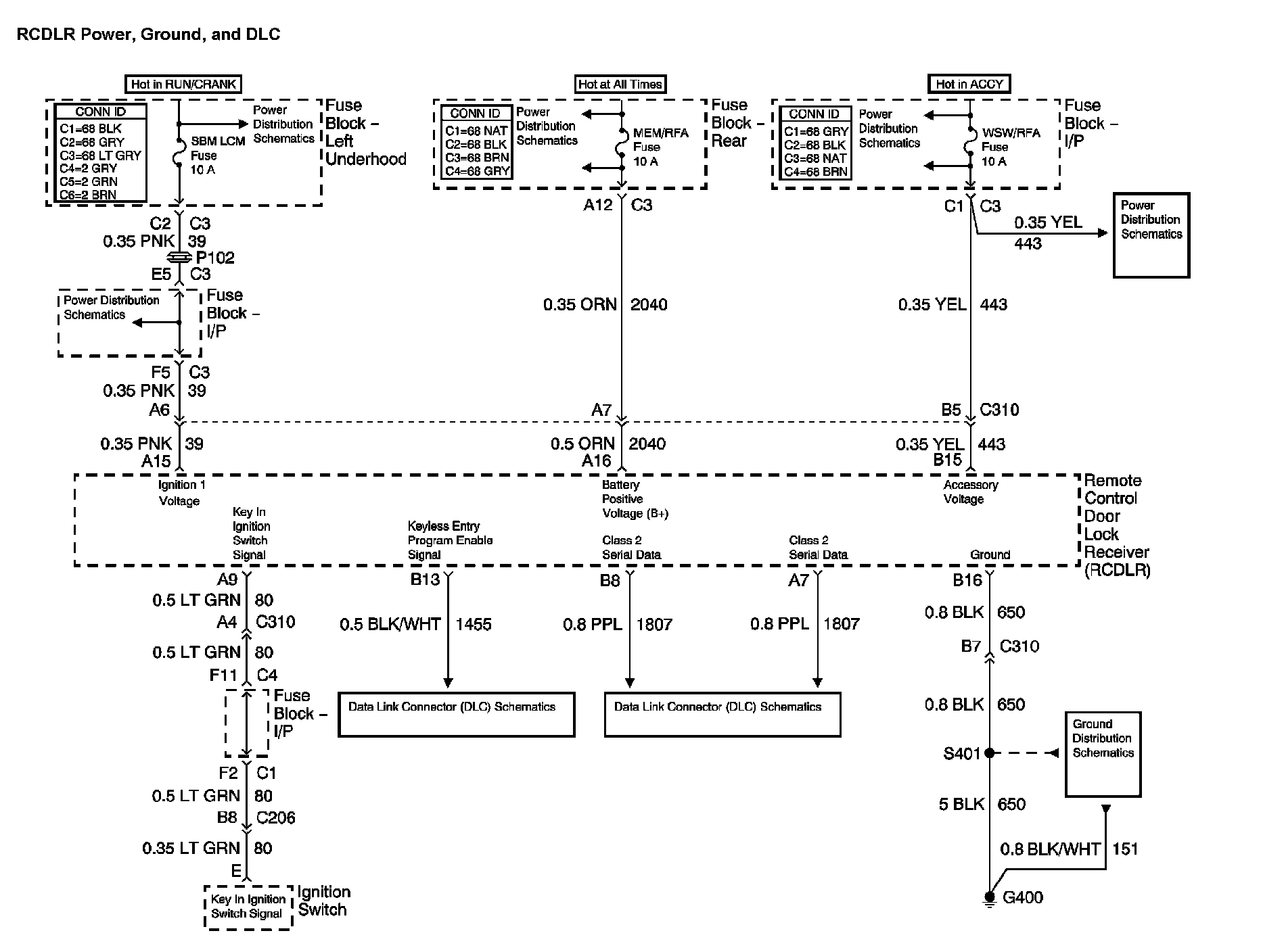 The locations for the Connectors, Grounds, Splices, and Grommets shown within these diagrams can be found via their at Vehicle Locations.
