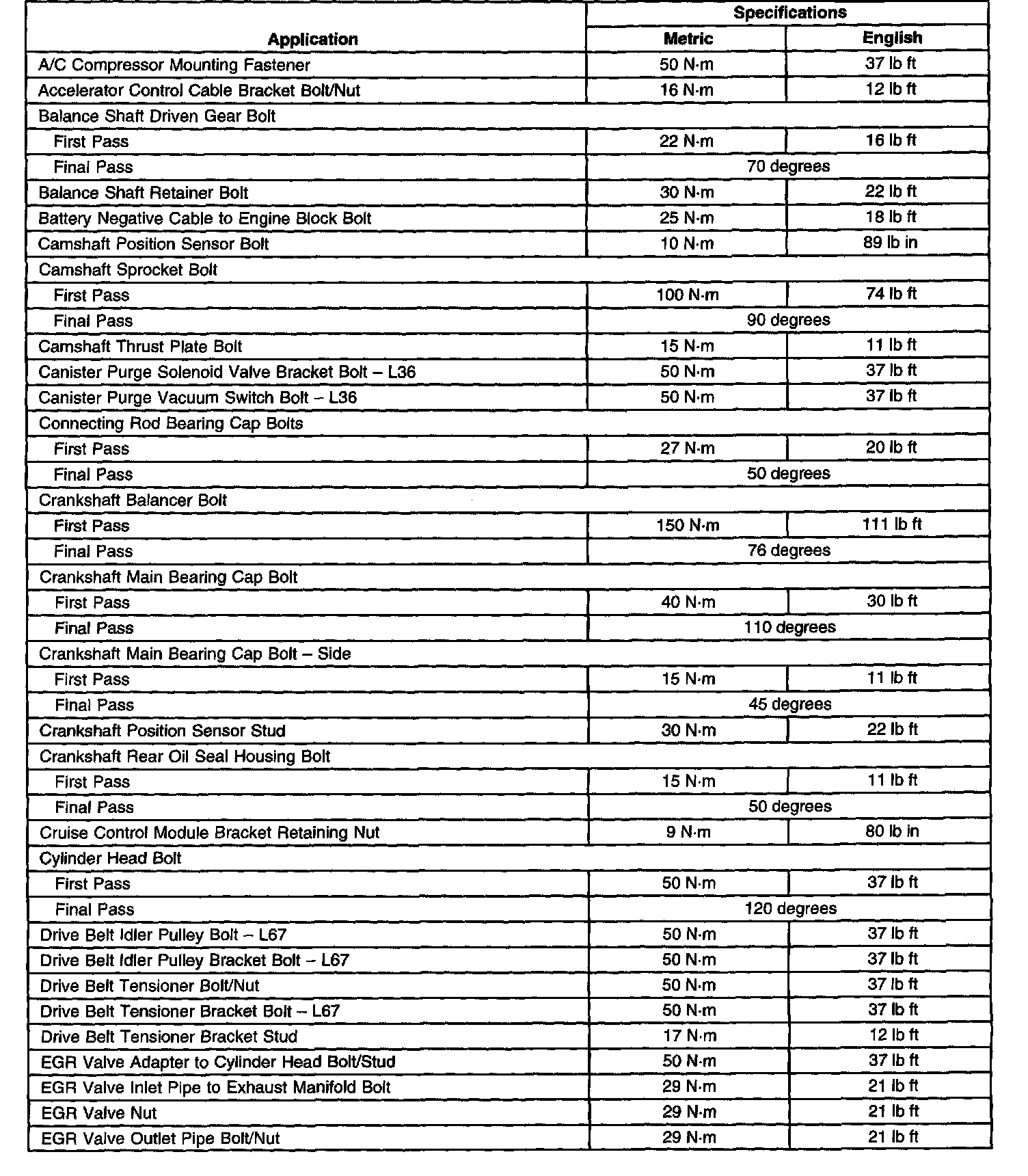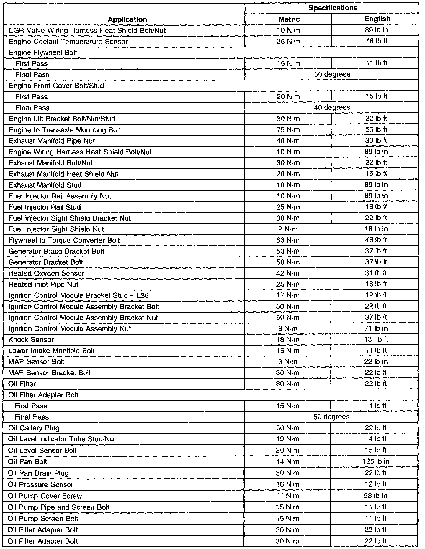 Fastener Tightening Specifications