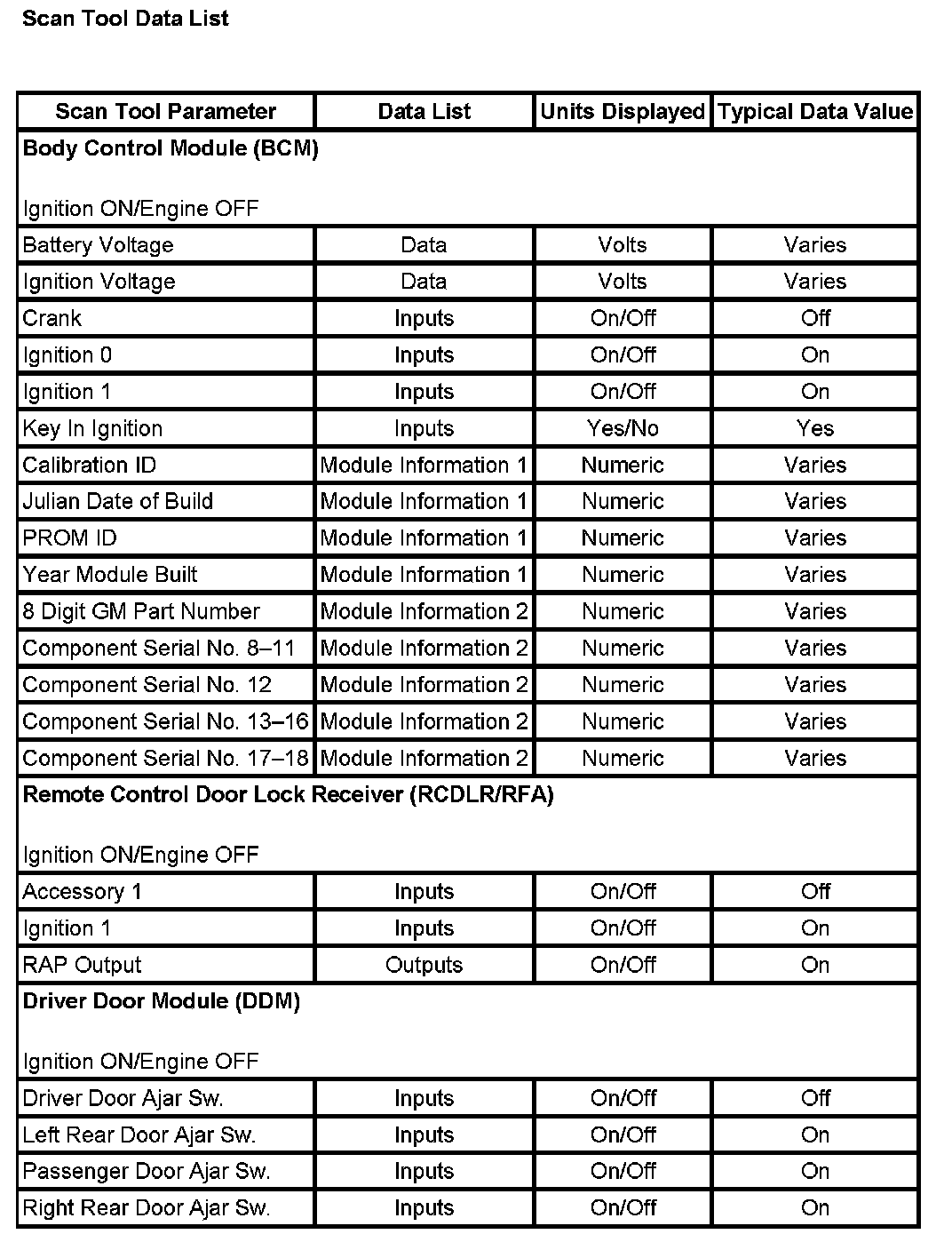 Scan Tool Data List: