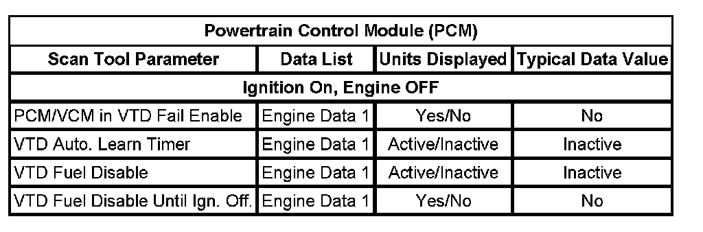 Vehicle Theft Deterrent (VTD) Module Data List: