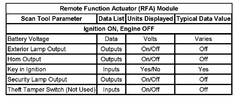 Scan Tool Data List - Antitheft System
