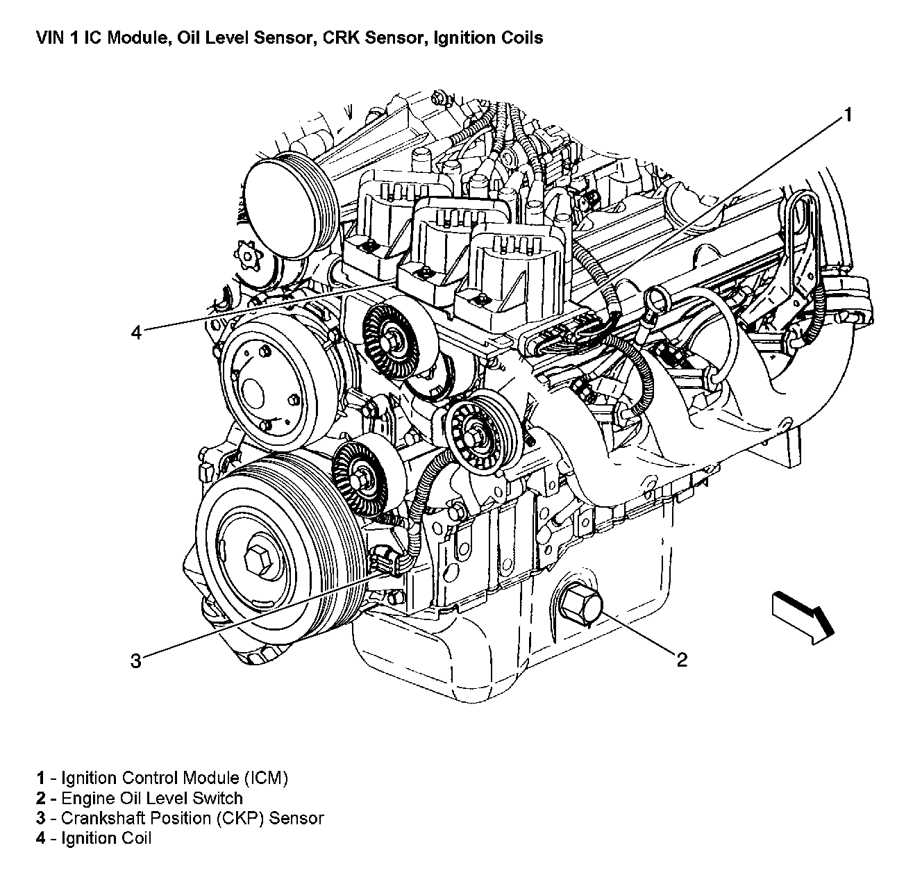 IC Module, Oil Level Sensor, CRK Sensor, Ignition Coils:
