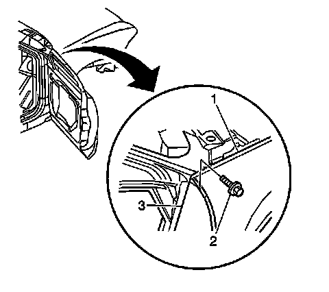 3. Install the bolt (2) in order to retain the top of the fender (1) at the door hinge pillar.