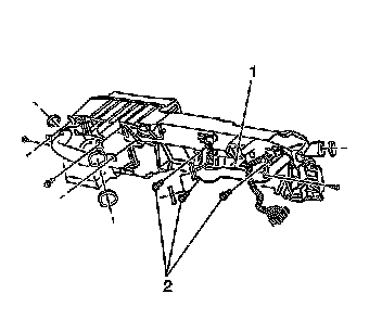 2. Remove the fasteners (2) securing the heater A/C duct.