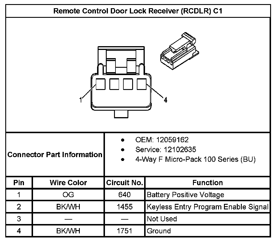 Remote Control Door Lock Receiver (RCDLR) C2 (With RPO Code AP3):