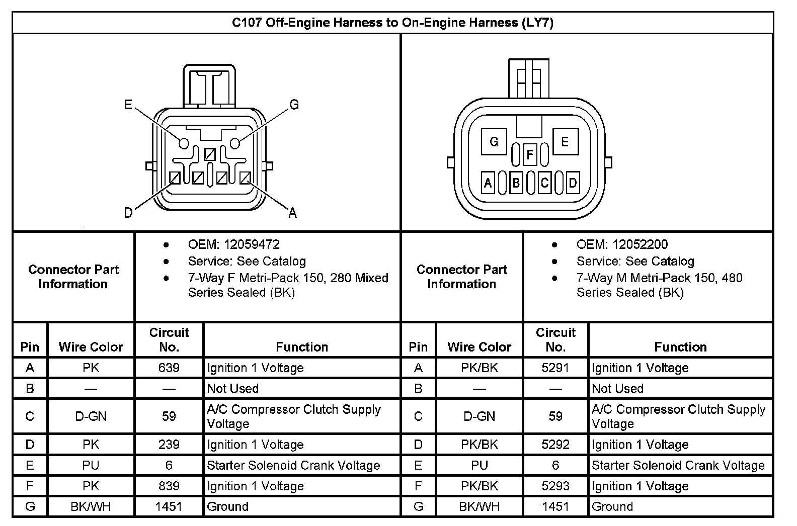 C107 Off-Engine Harness To On-Engine Harness: