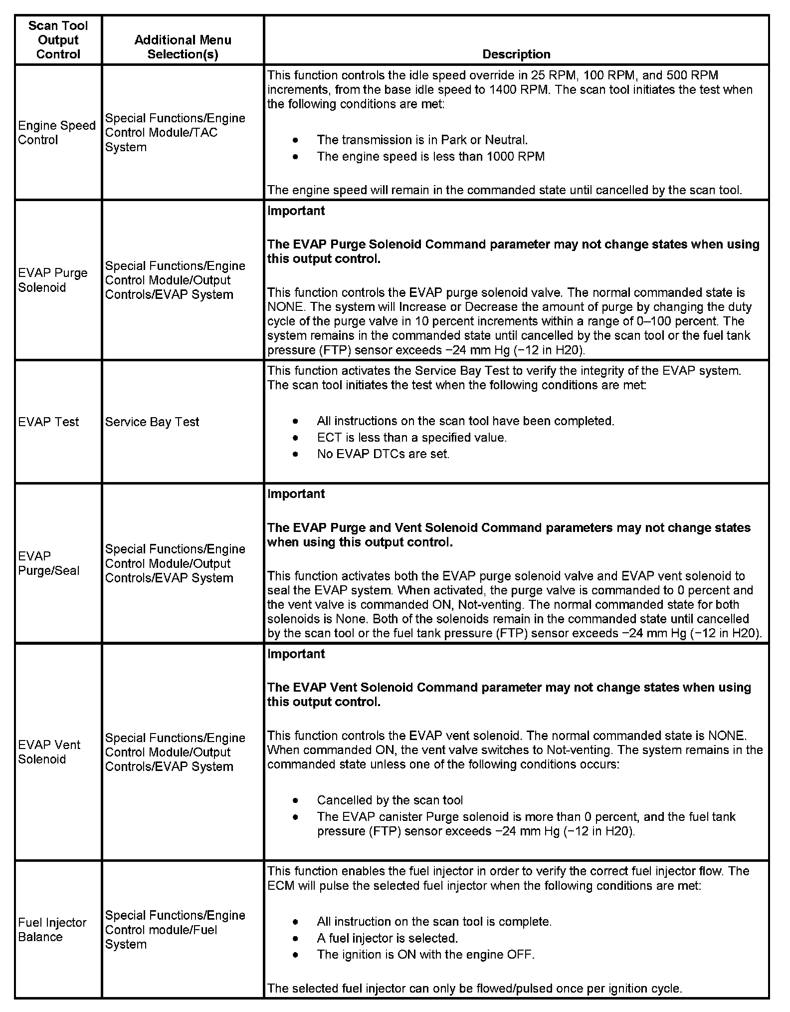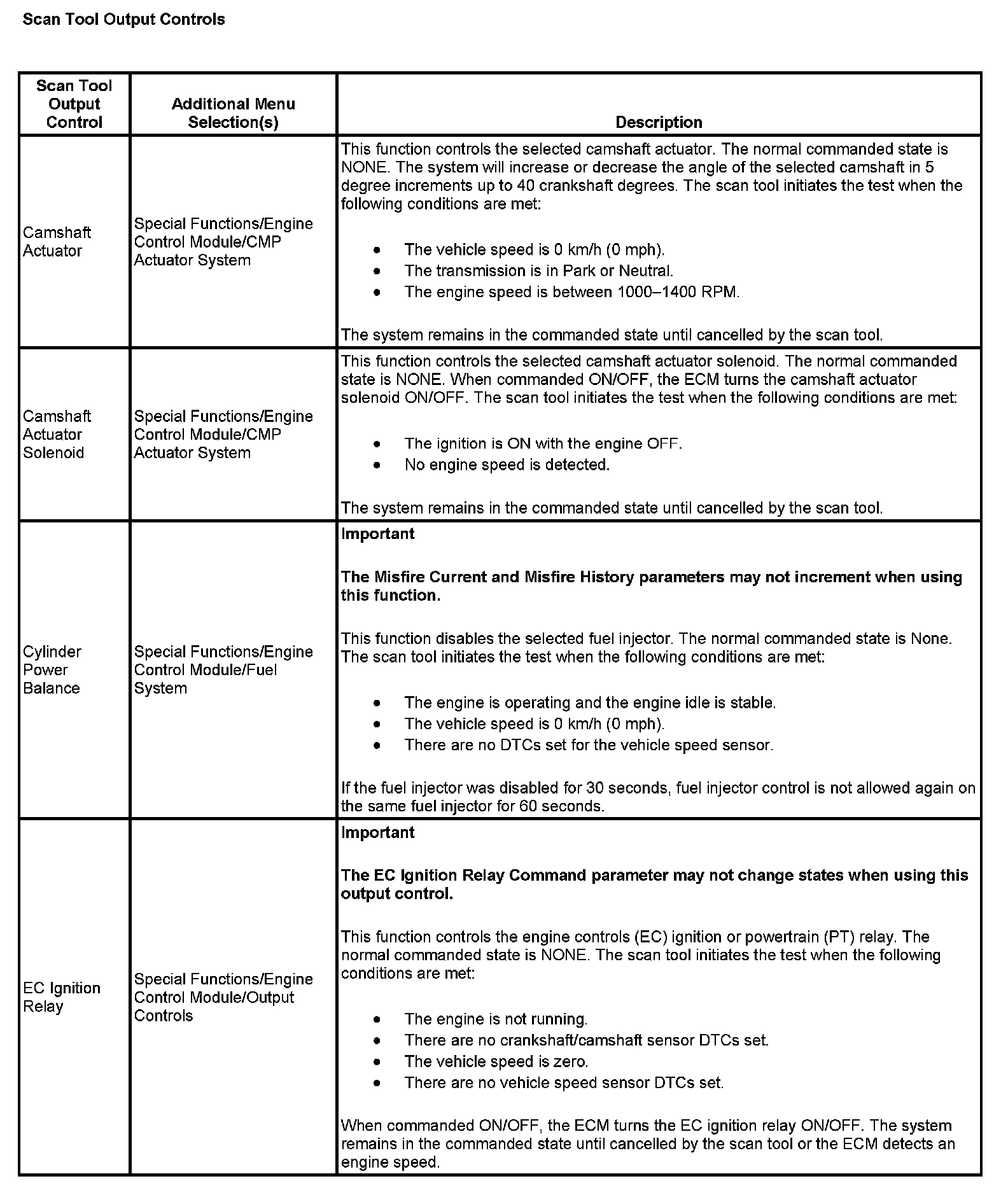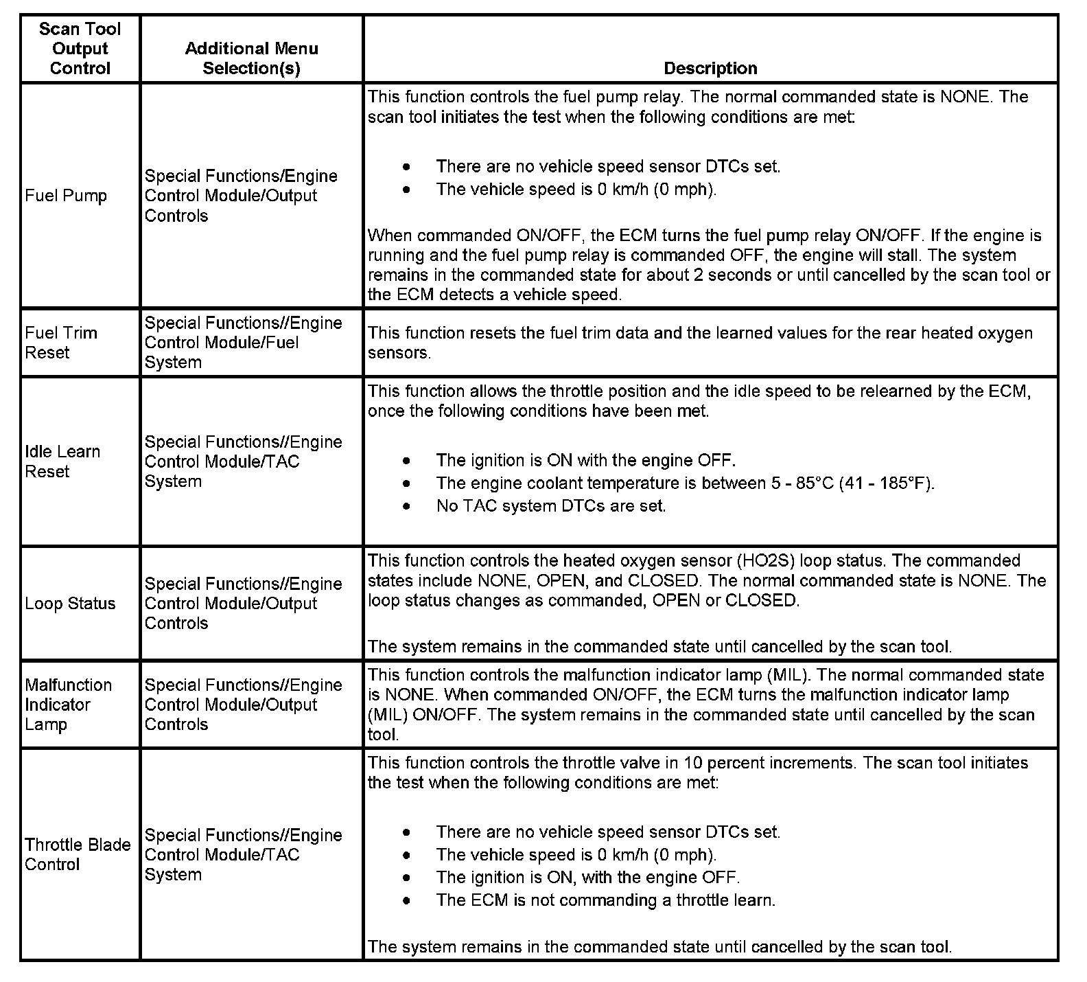 Scan Tool Output Controls