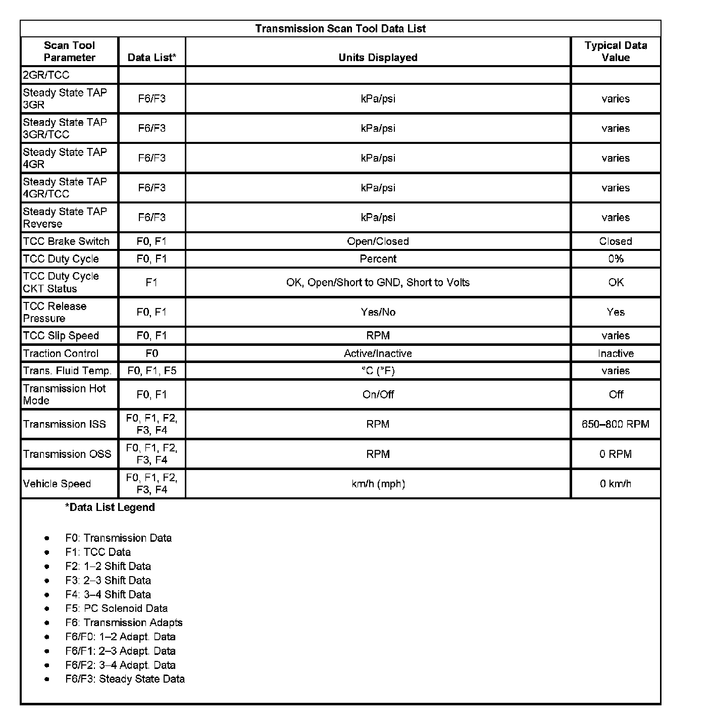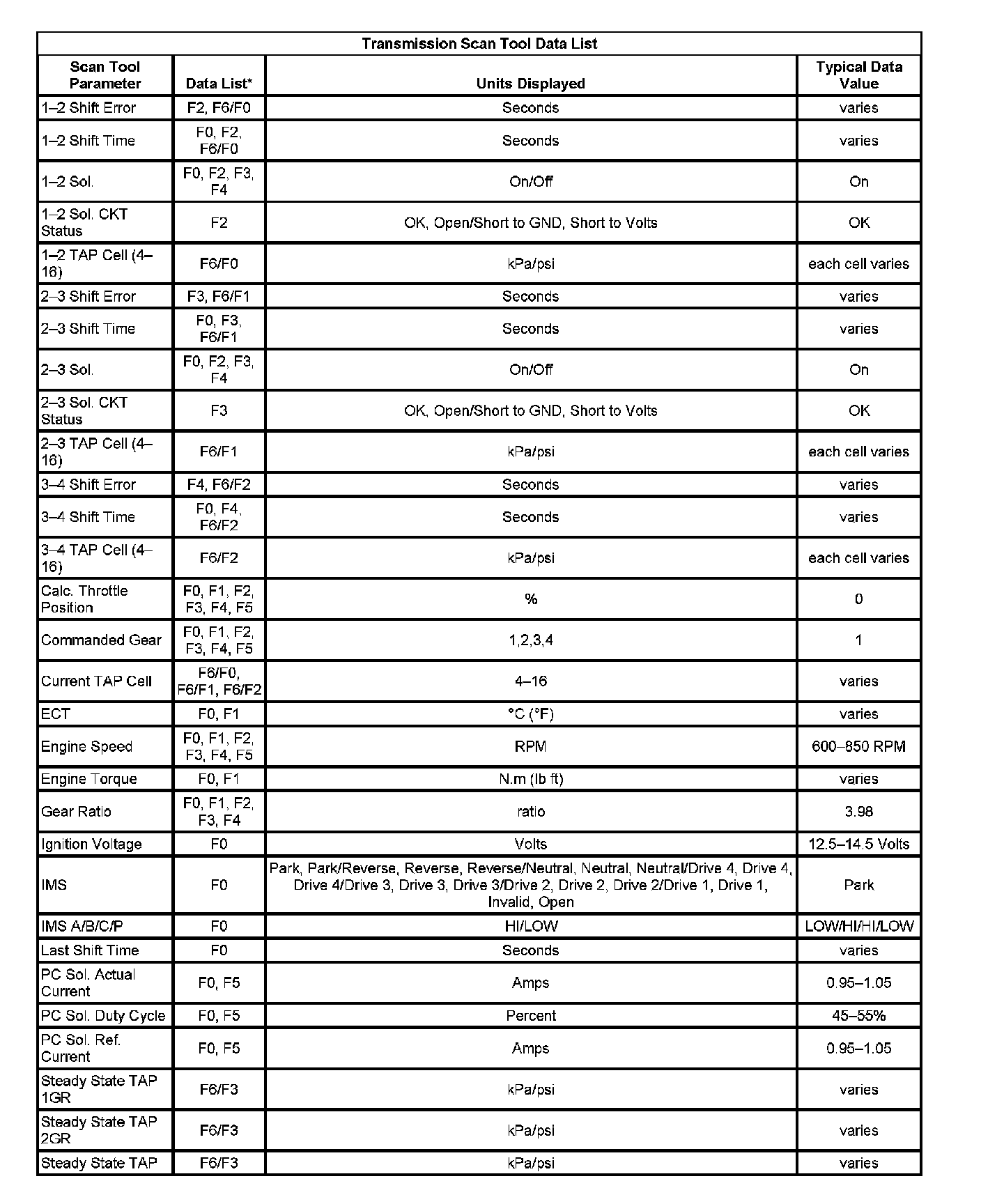 Transmission Scan Tool List 1: