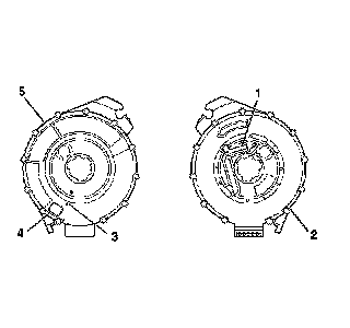 5. If the front side (2) of the SIR coil has NO centering window, and the back side (1) includes NO spring service lock, perform the following steps: