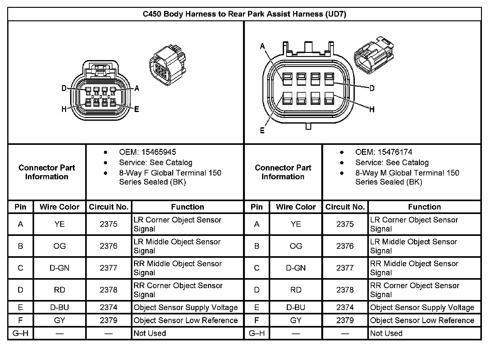 C450 Body Harness To Rear Park Assist Harness (With RPO Code UD7):