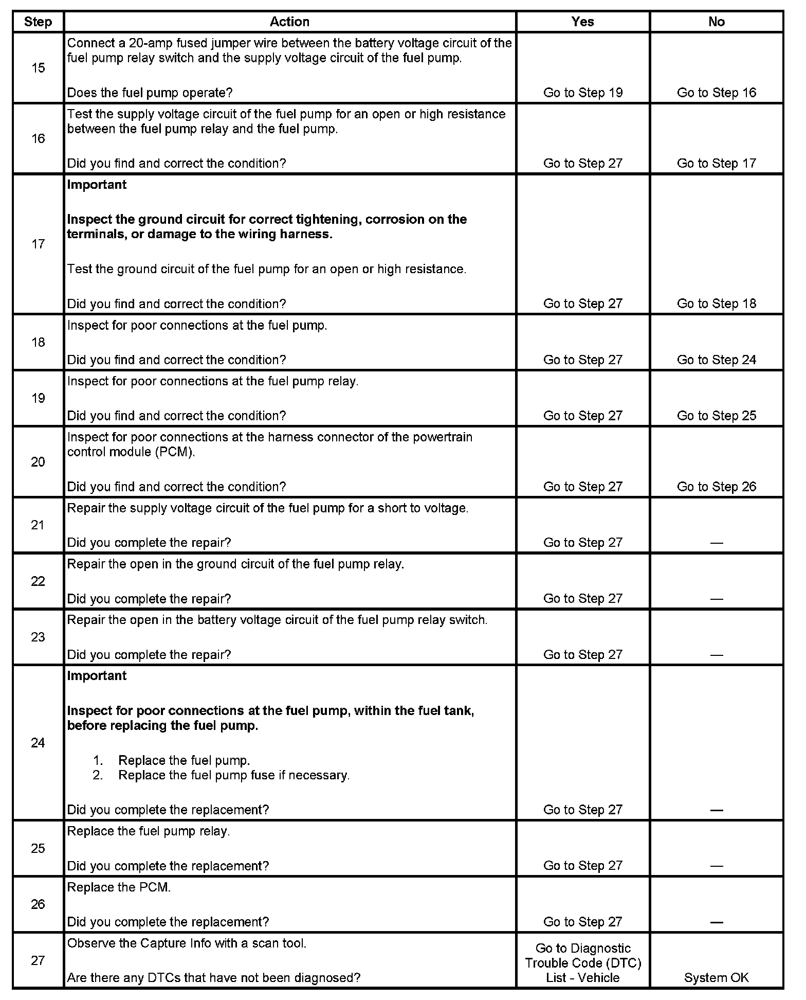 13. This step determines if the condition with the circuit is intermittent. If the fuse does not open, inspect the supply voltage circuit between the fuse and the fuel pump for an intermittent condition.