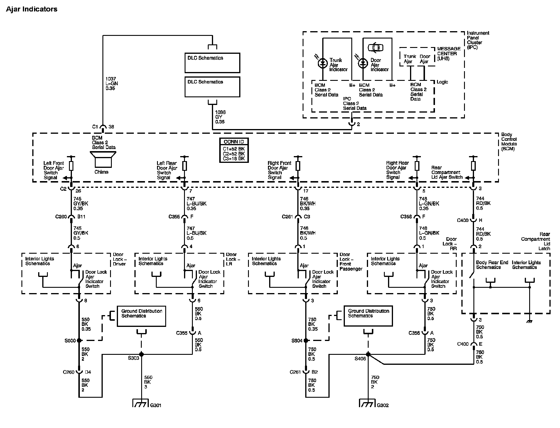 Locations: The locations for the Connectors, Grounds, Splices, and Grommets shown within these diagrams can be found via their numbers at Vehicle Locations. Locations