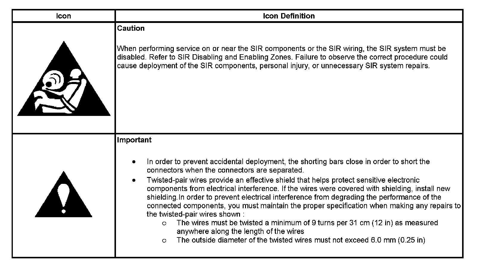Air Bag System Schematic Icons