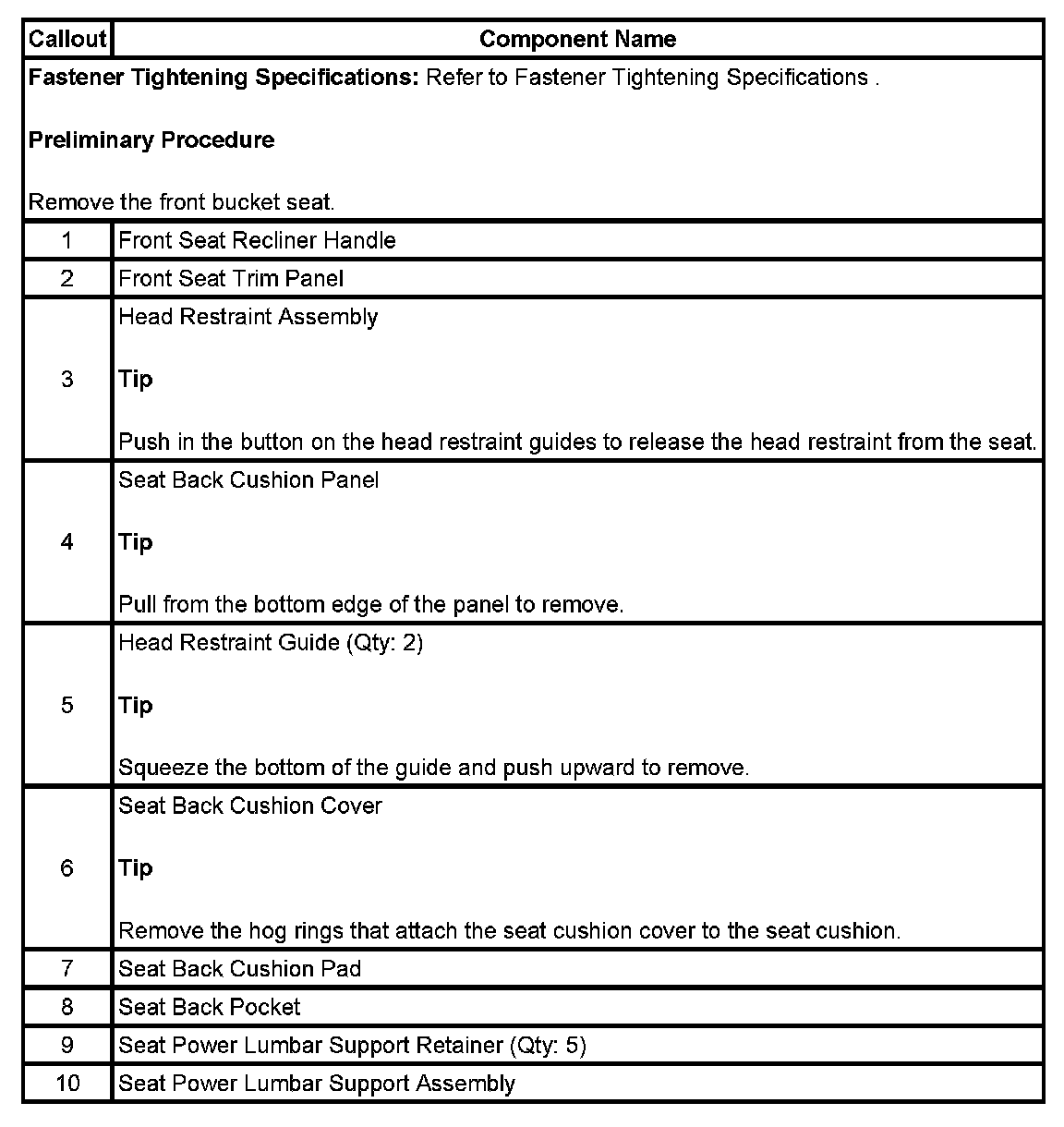 Lumbar Replacement - Front Seat