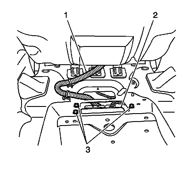 4. Install the ECU bracket retaining bolts (3) that secure the unit to the seat cushion frame.