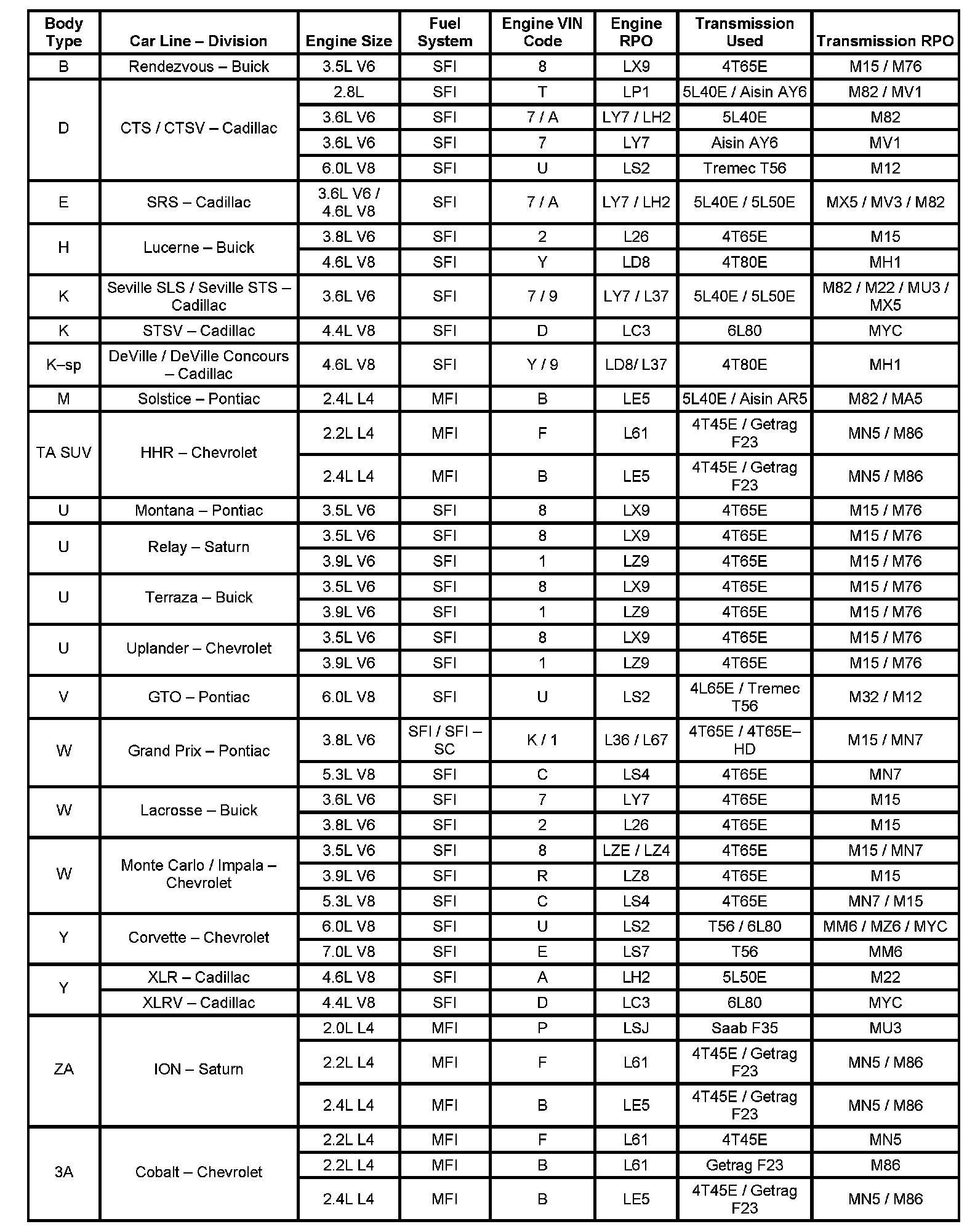 Engine and Transmission Usage (Passenger Car Applications) 1: