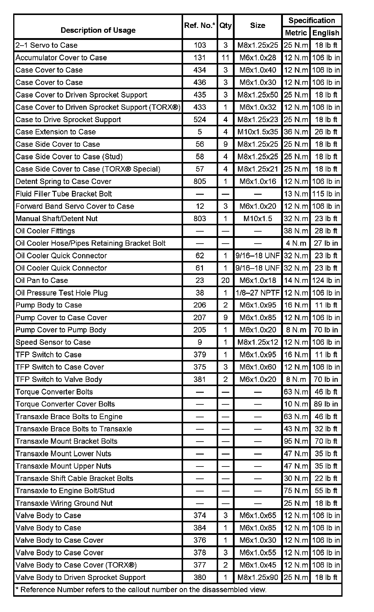 Fastener Tightening Specifications: