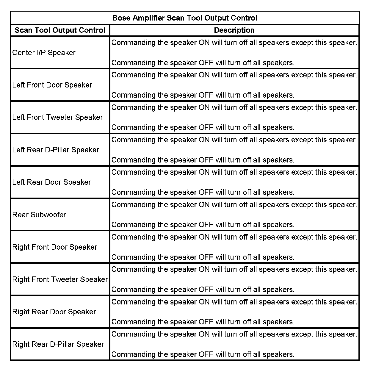 Bose Amplifier Scan Tool Output Control: