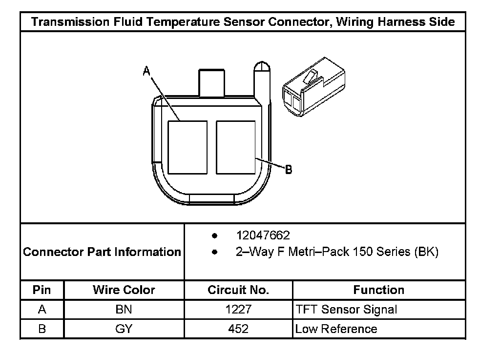 Transmission Fluid Temperature Sensor Connector, Wiring Harness Side: