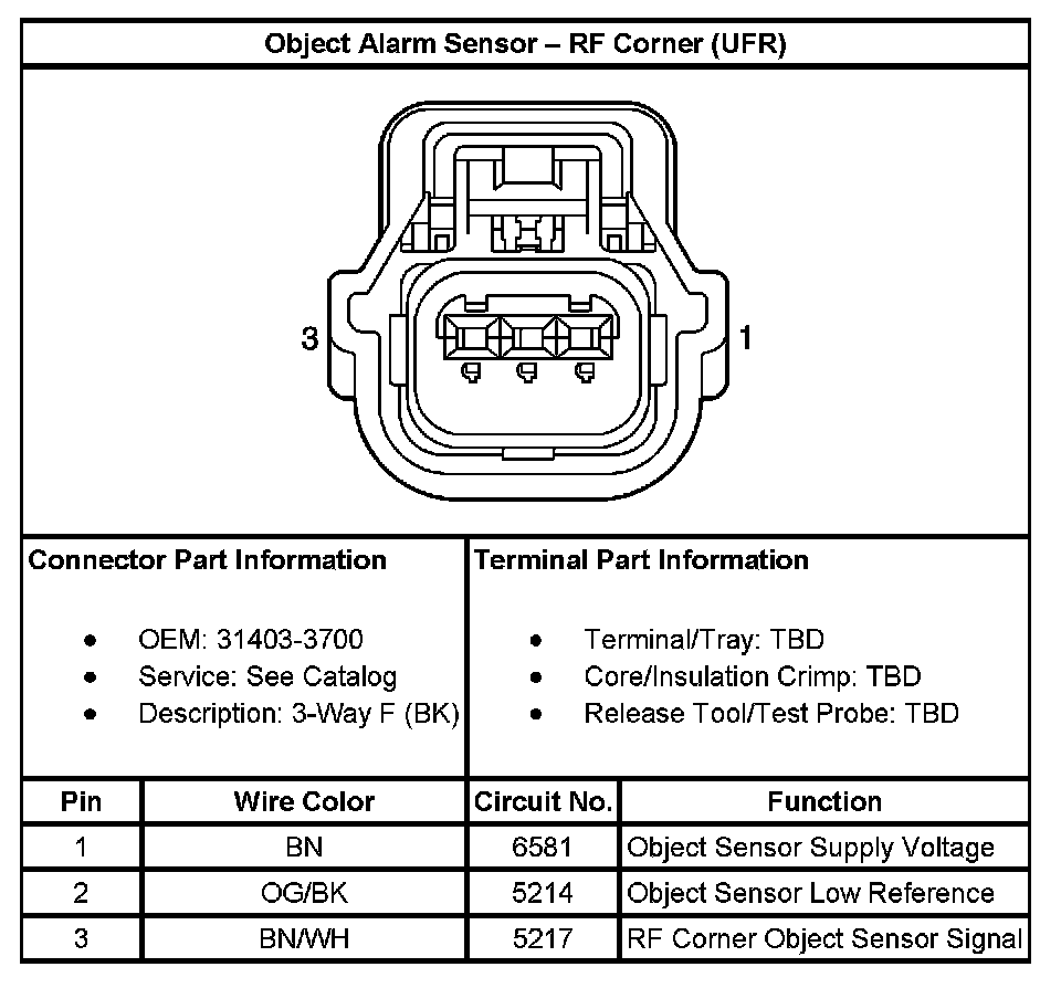 Object Alarm Sensor - RF Corner (With RPO Code UFR):