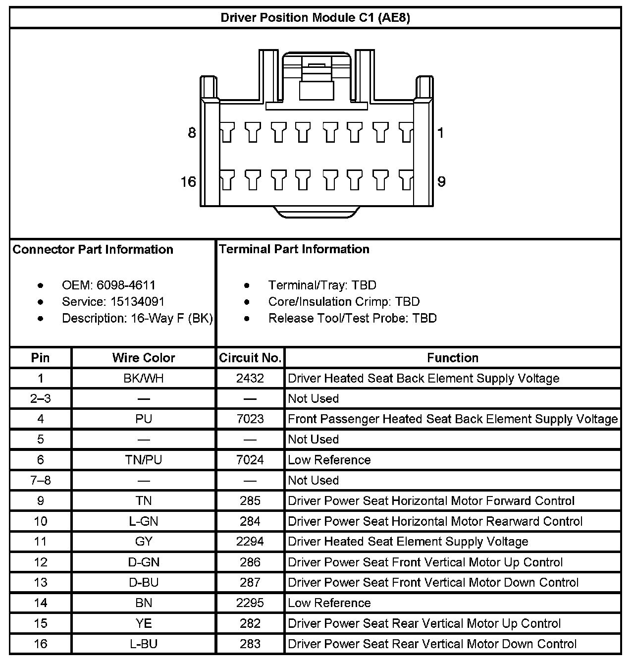 Driver Position Module C1 (With RPO Code AE8):