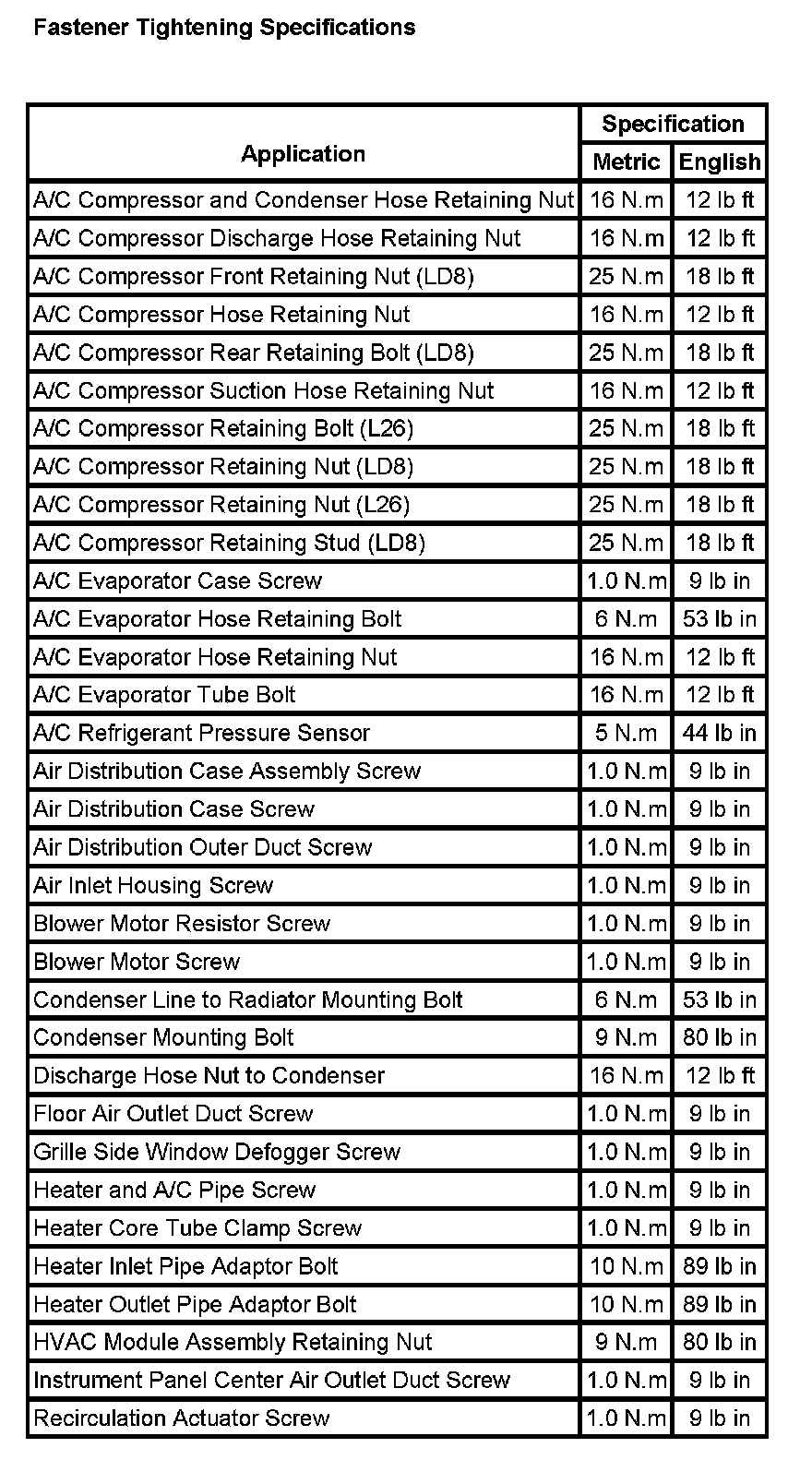 Fastener Tightening Specifications (Part 1):