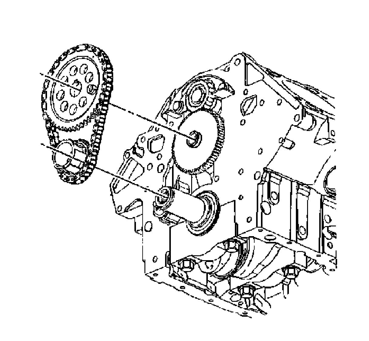 ^ Assemble the timing chain on the sprockets with the timing marks as close together as possible.