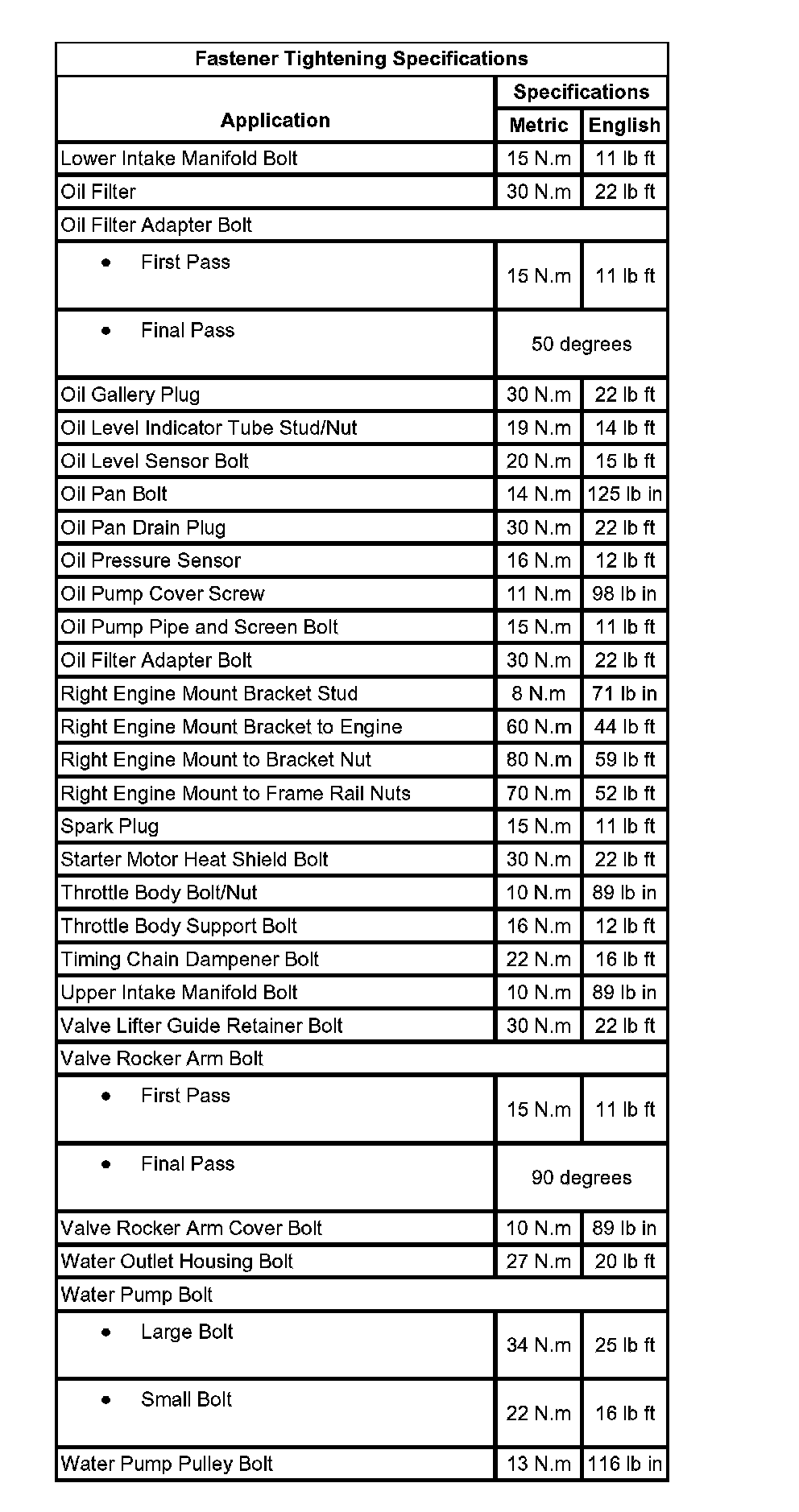 Fastener Tightening Specifications: