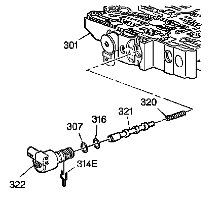 1. Install new O-ring seals (307, 316) onto the pressure control (PC) solenoid valve (322), if they had been removed.