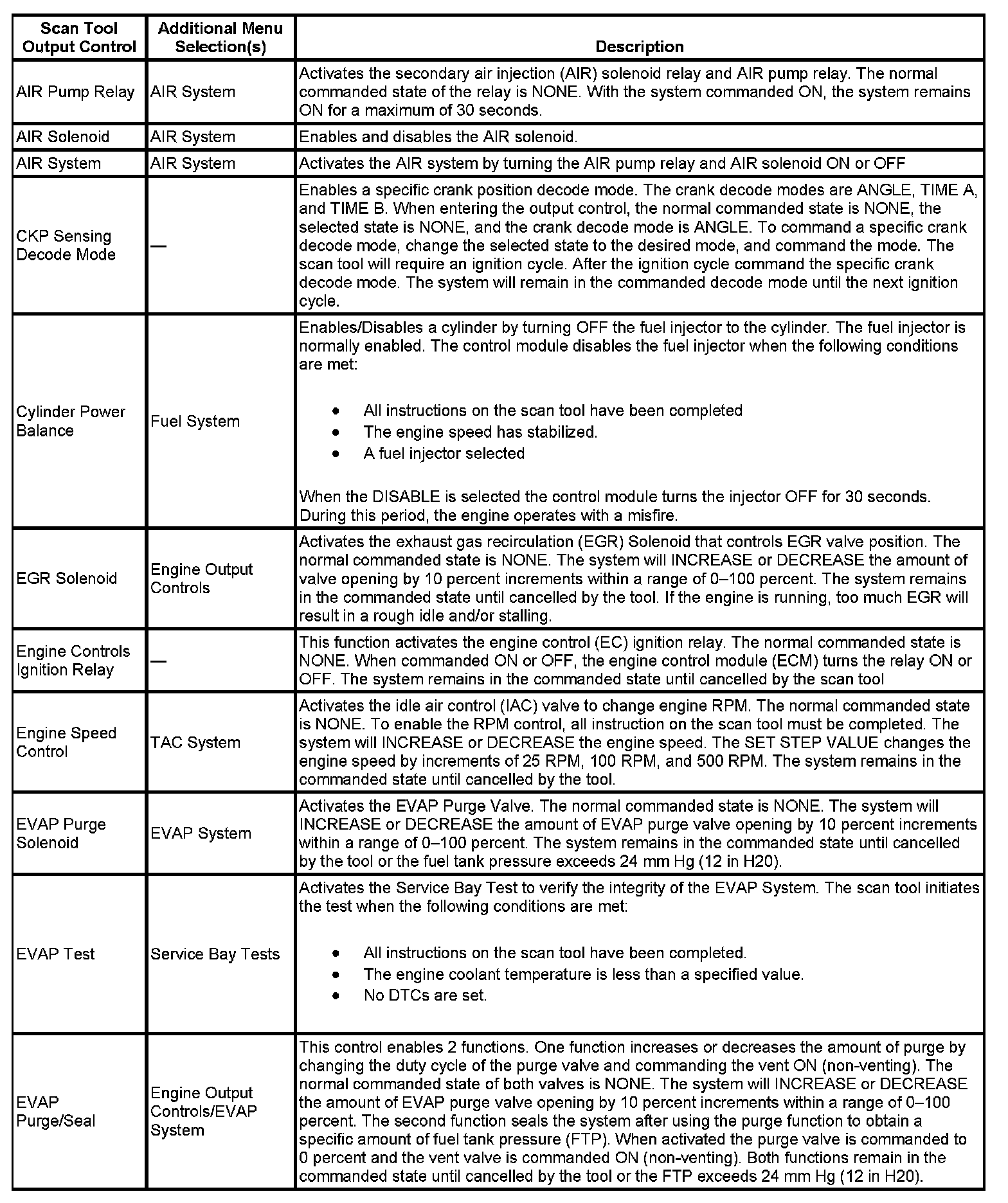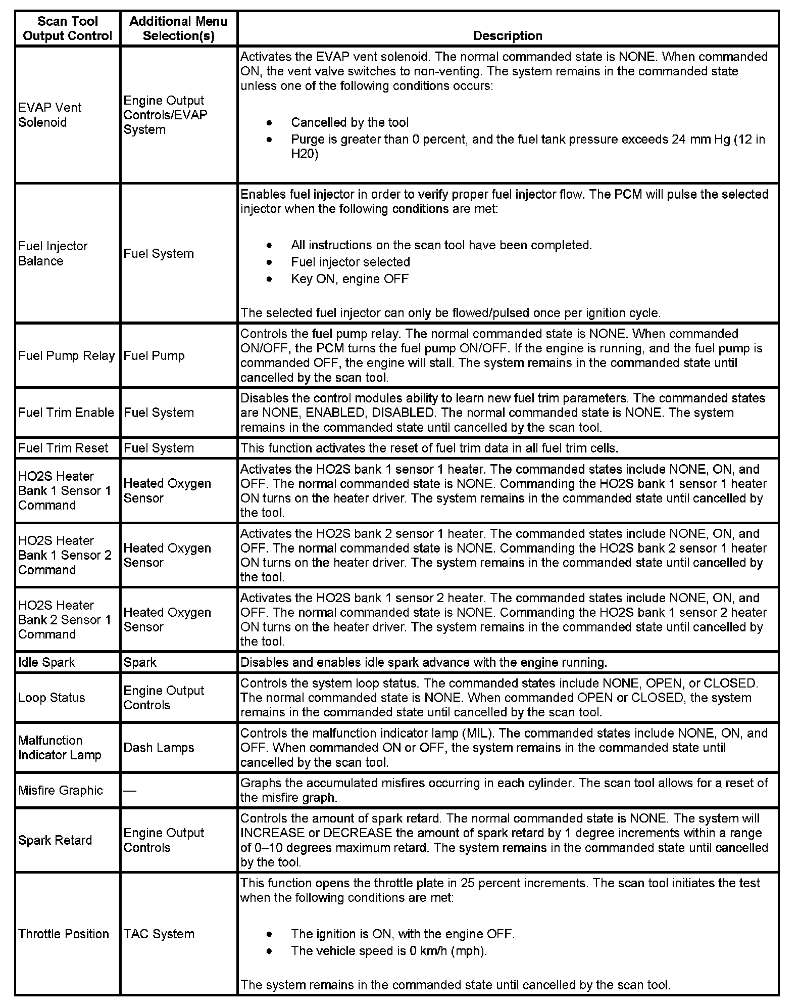Scan Tool Output Controls