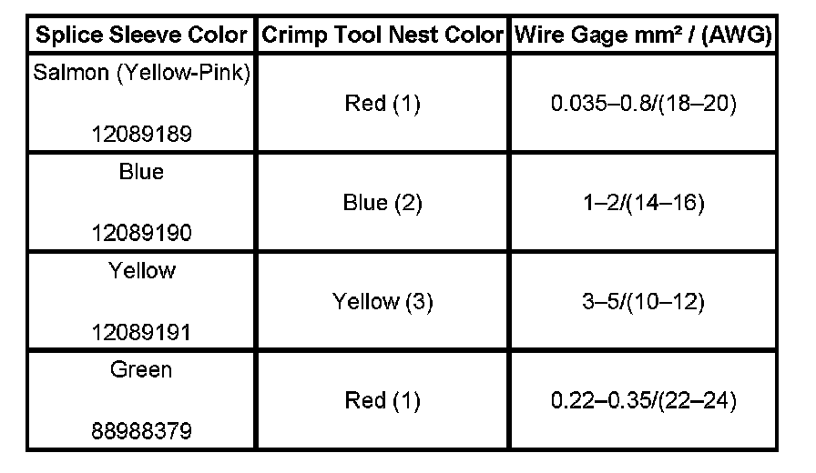 4. Select the proper DuraSeal splice sleeve according to the wire size. Refer to the above table at the beginning of the repair procedure for the color coding of the DuraSeal splice sleeves and the crimp tool nests.