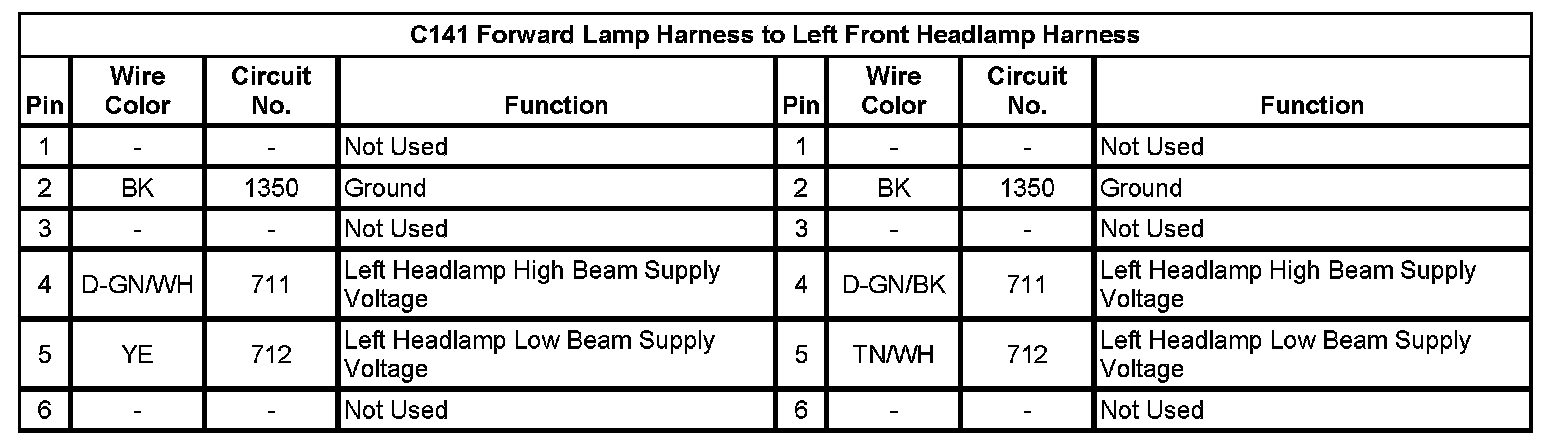C141 Forward Lamp Harness to Left Front Headlamp Harness: