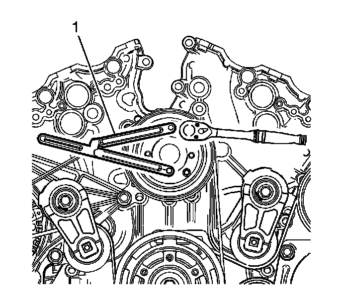 5. Use the EN 46104 (1) in order to retain the water pump pulley.
